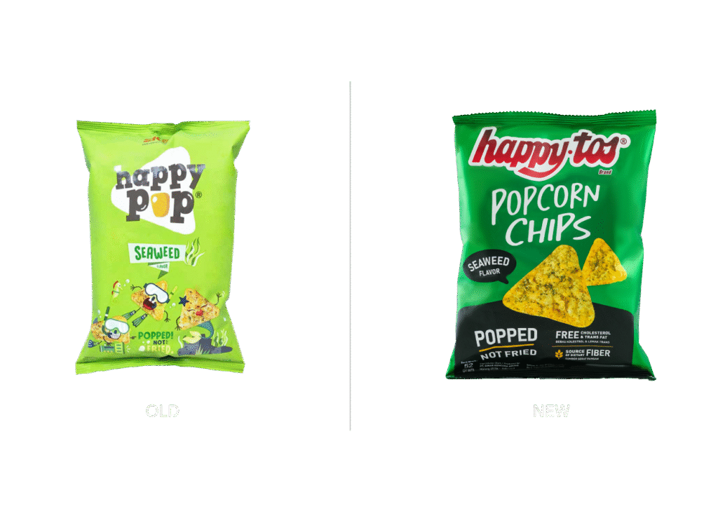 As one of Happytos’ most iconic product lines, Tortilla Chips needed a more confident stance. We gave it just that— with stronger contrasts, assertive graphic elements, and a more structured layout that visually anchors the “OG” reputation of the product. The new design signals freshness and quality while still honoring the familiarity of the old pack, keeping it recognizable but updated for today’s visual landscape.